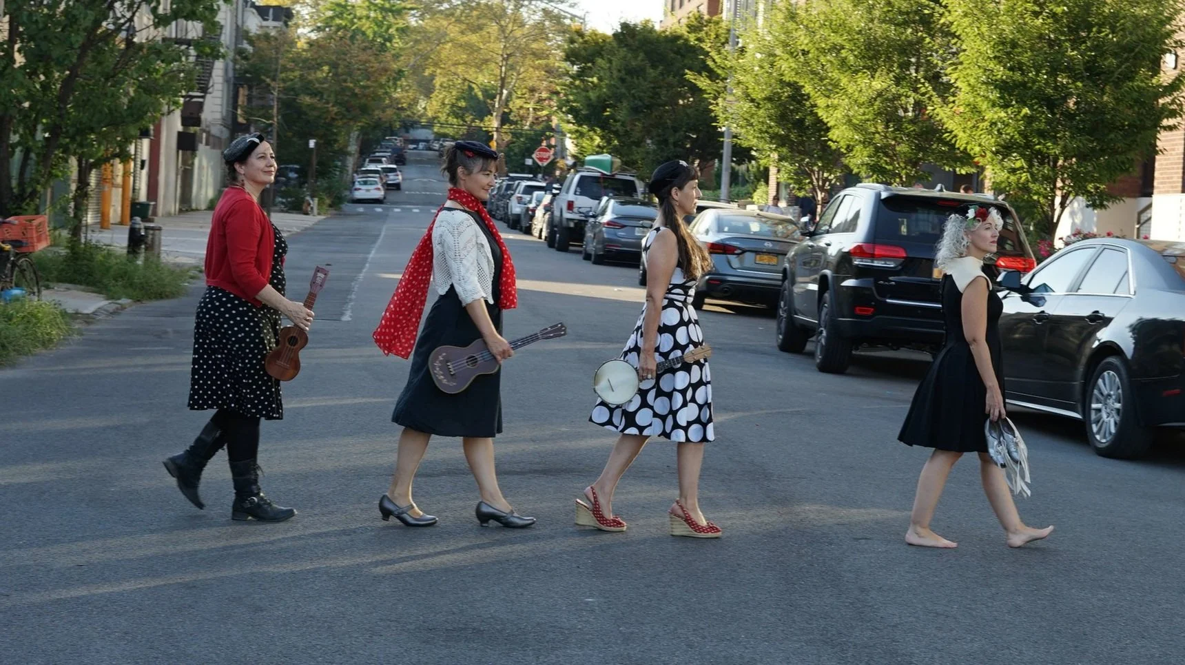 “Beauties playing ukes and singing while a fourth does tap dancing, percussion, and props. Last night, they distributed at various times bacon, frosted cookies, scratch-off tickets (I won $4), and champagne (for the "Tiny Bubbles" finale). Check. Them. Out. " - Manhattan User's Guide